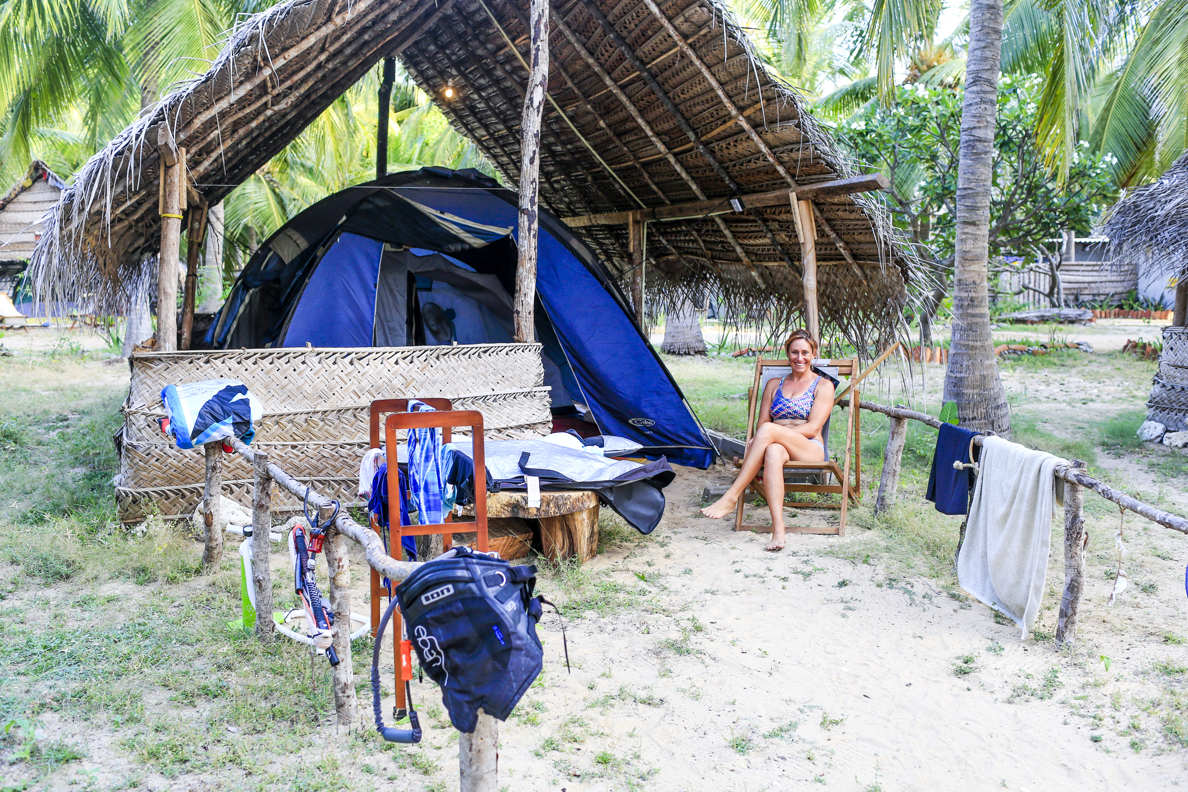 Set on 8 acres of beachfront in Kalpitiya, our camp is shaped by a genuine love for kitesurfing, wingfoiling, nature, and community. With direct access to both the calm lagoon and the open ocean, it’s a welcoming place for all levels, whether you’re here to ride, learn with our Kiteschool Sri Lanka instructors, or simply relax by the sea.