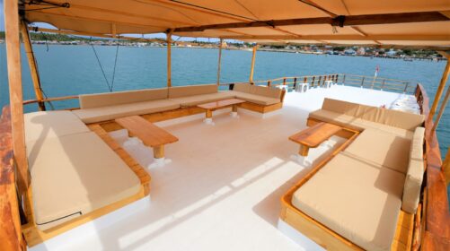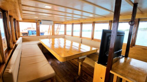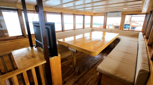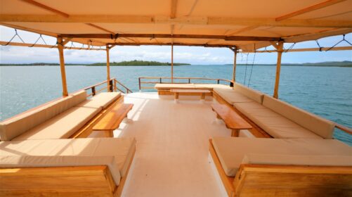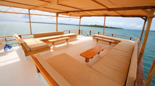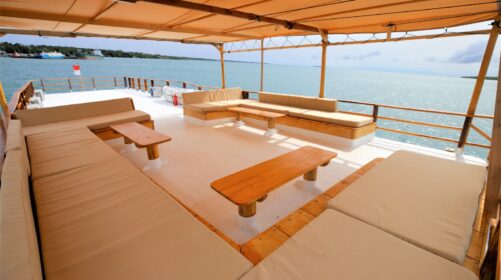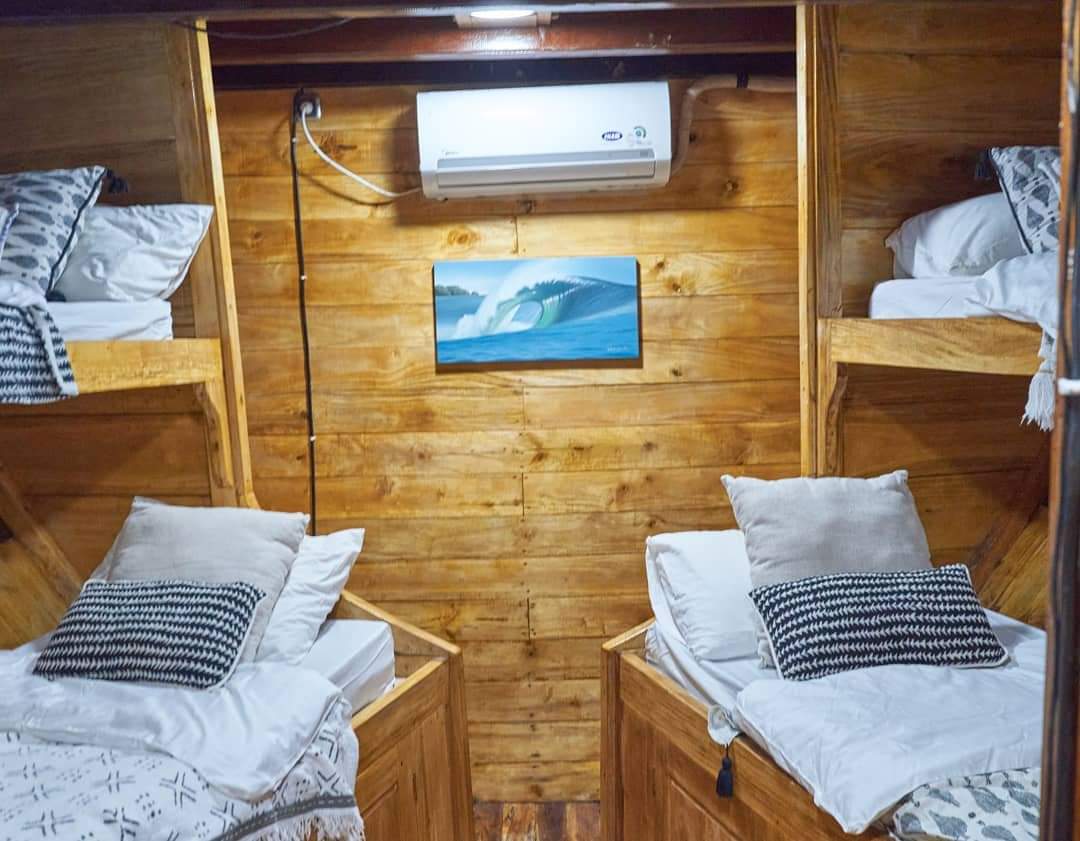 Raja Ombak is a 25‑meter custom‑built surf and dive vessel launched in 2019 in Sulawesi, home of the legendary Bugis seafarers. Inspired by centuries of Indonesian maritime tradition, this boat blends authenticity with modern comfort for an unforgettable journey.