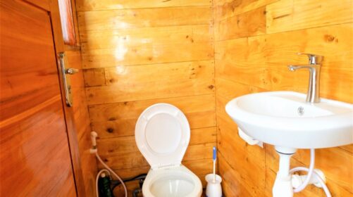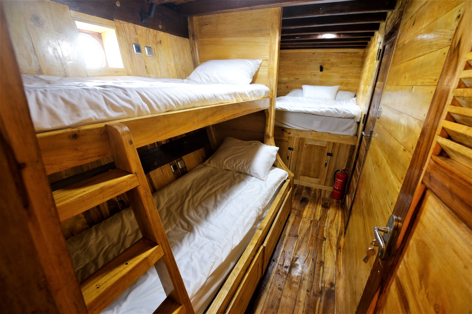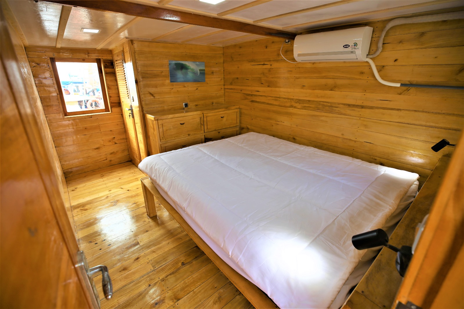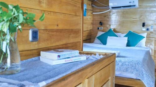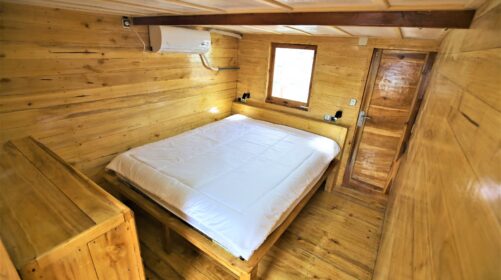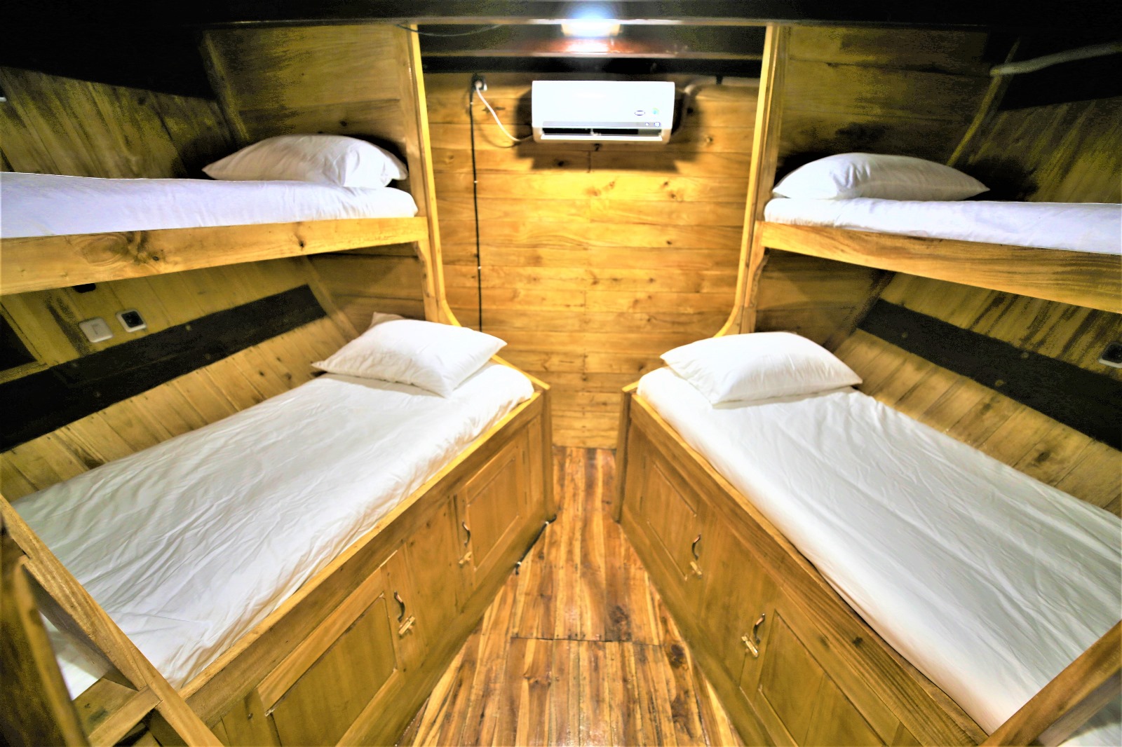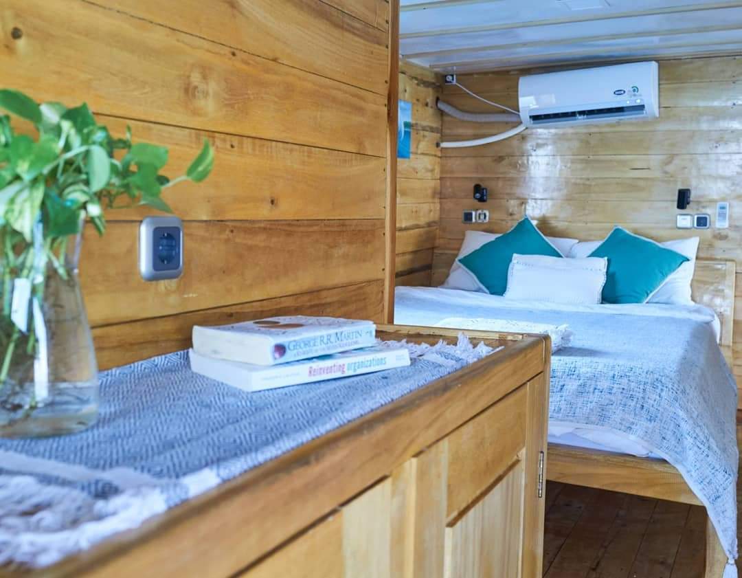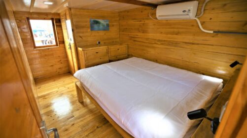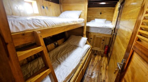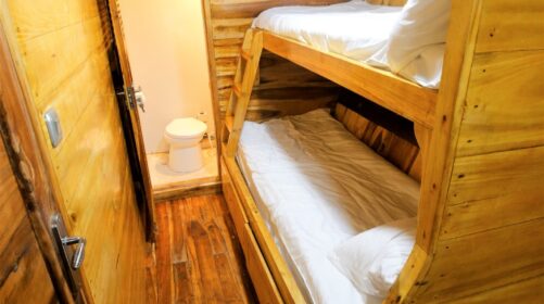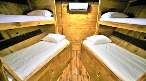 Three shared cabins with air‑conditioning and two en‑suite bathrooms for maximum comfort.